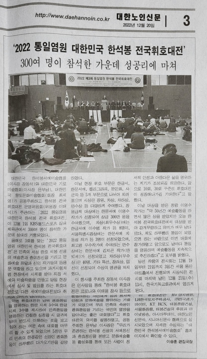 - 내용 : 전국휘호대전 개최, 전시, 시상식 소개