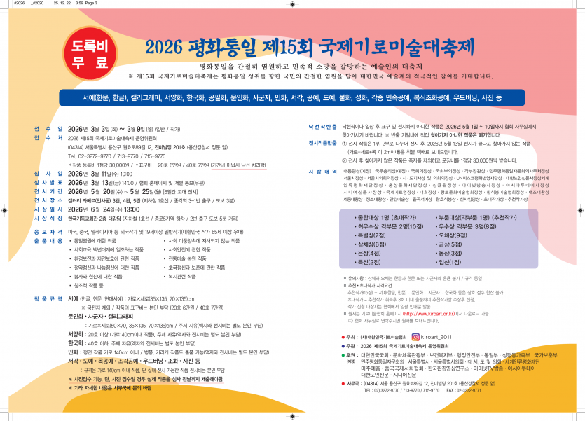 ☞접수처 : 2026 제15회 국제기로미술대전 운영위원회